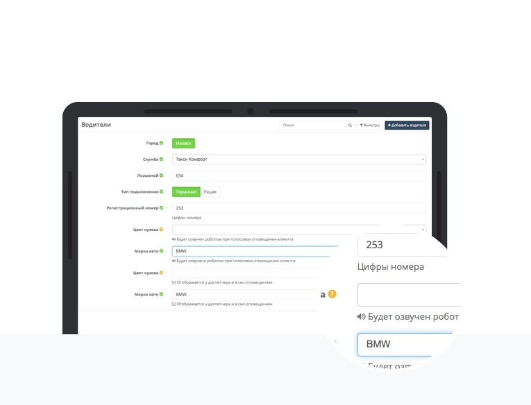 Один диспетчерский состав через наше ПО может обеспечивать службы такси из других городов.