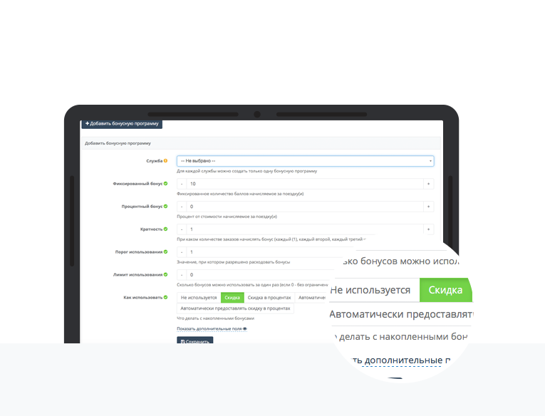 В личном кабинете руководителя осуществляется полный контроль всех процессов организации: от создания службы и тарифов до проработки бонусной системы для клиентов.